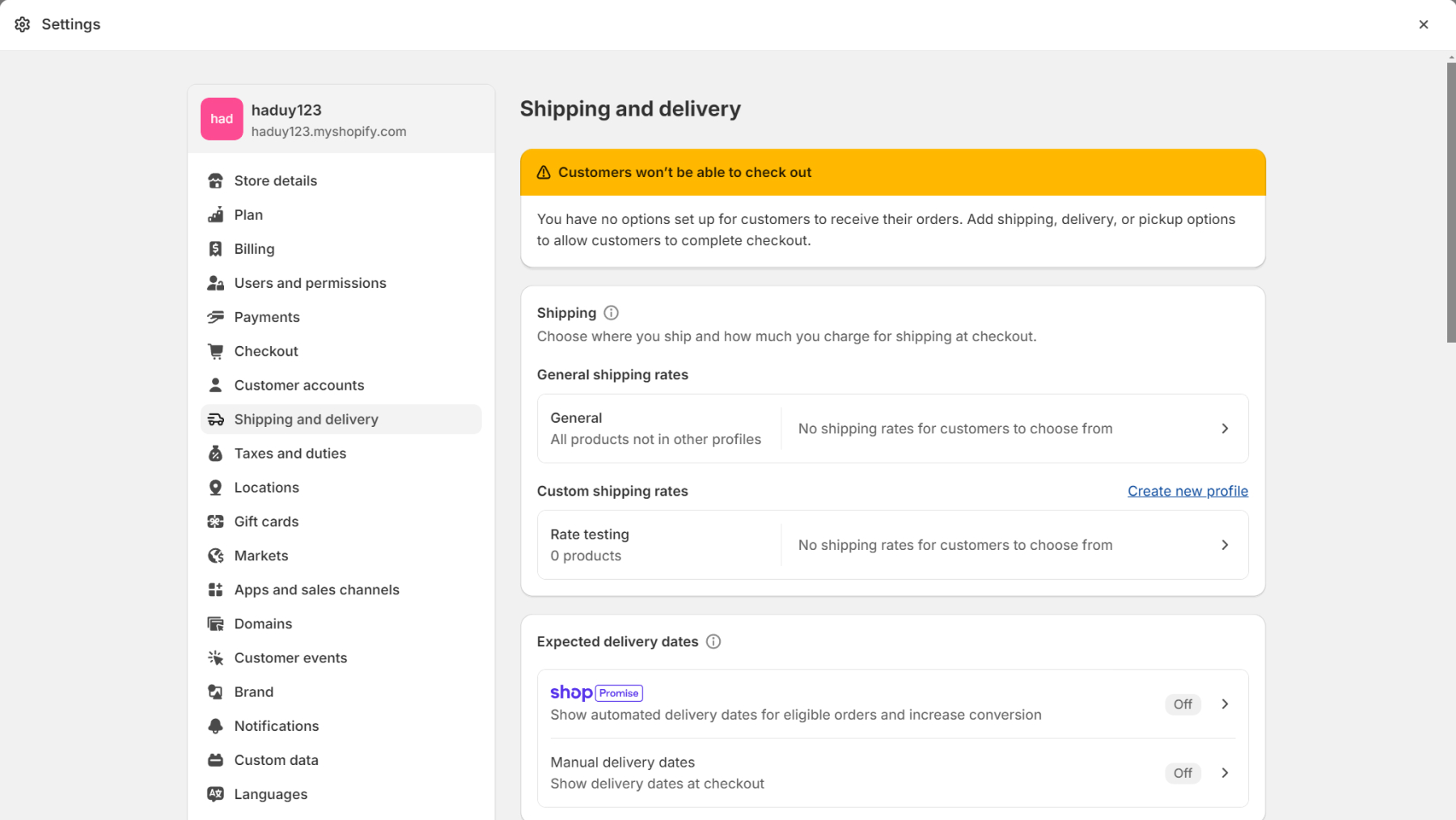 From your Shopify admin, go to Settings > Shipping and Delivery > Enter the Profile name