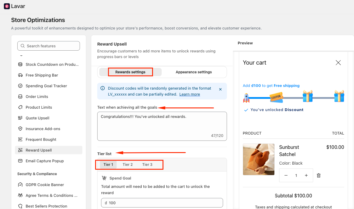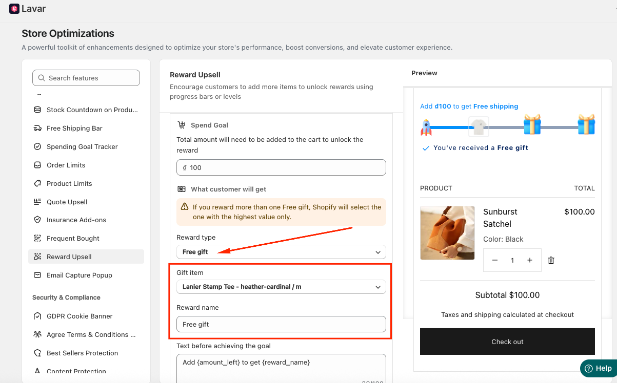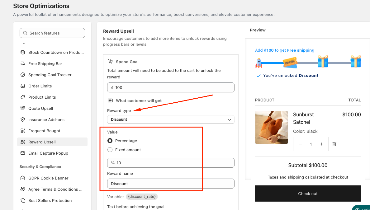 Navigate to Store Optimizations → Reward Upsell