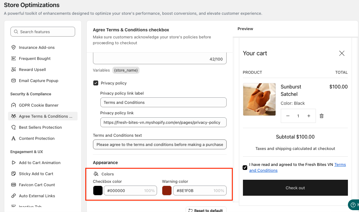 Step 3: Configure the Agree Terms & Conditions Checkbox Settings