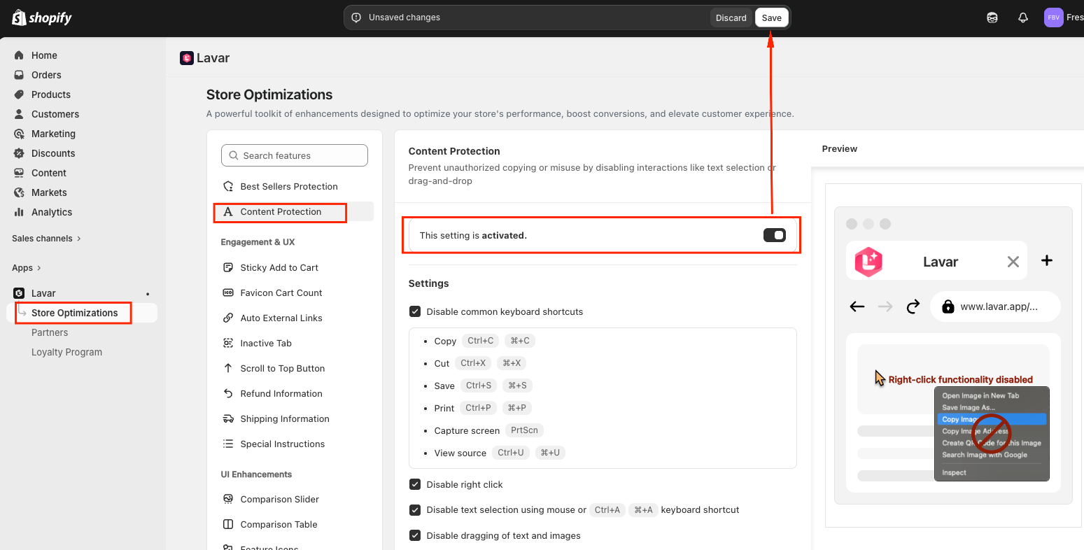 Navigate to Store Optimizations → Content Protection