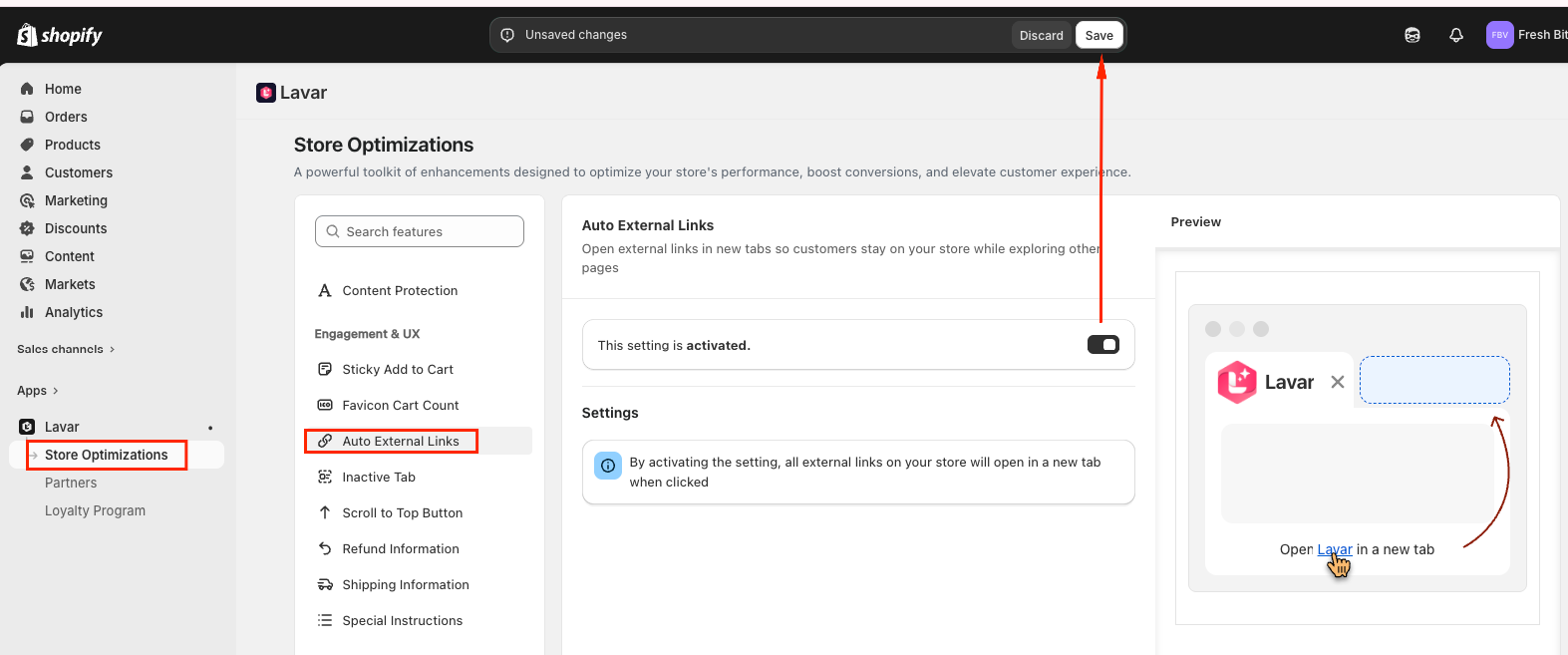Note: By activating the setting, all external links on your store will open in a new tab when clicked