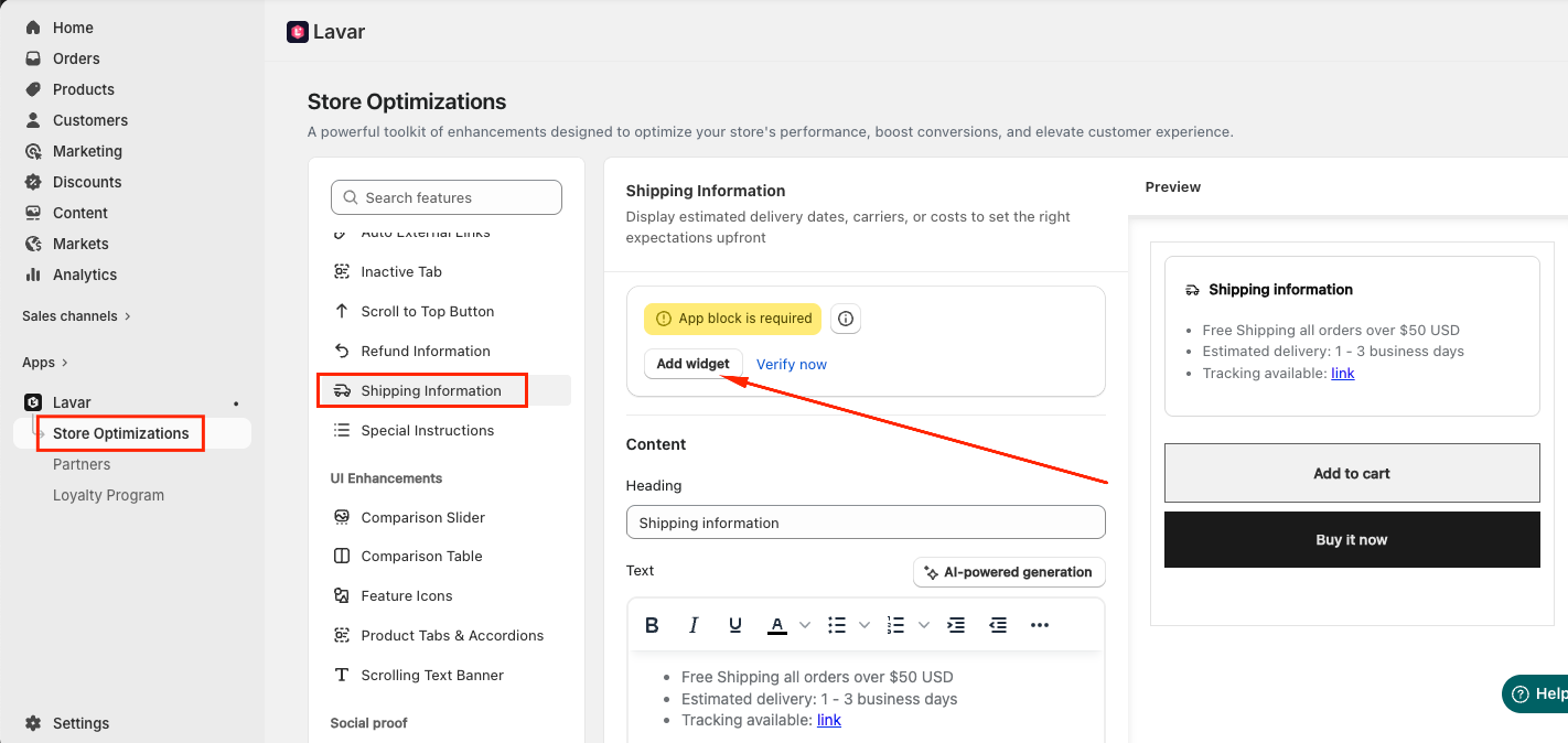 Make sure the Lavar app embed is enabled in your Theme Editor first.