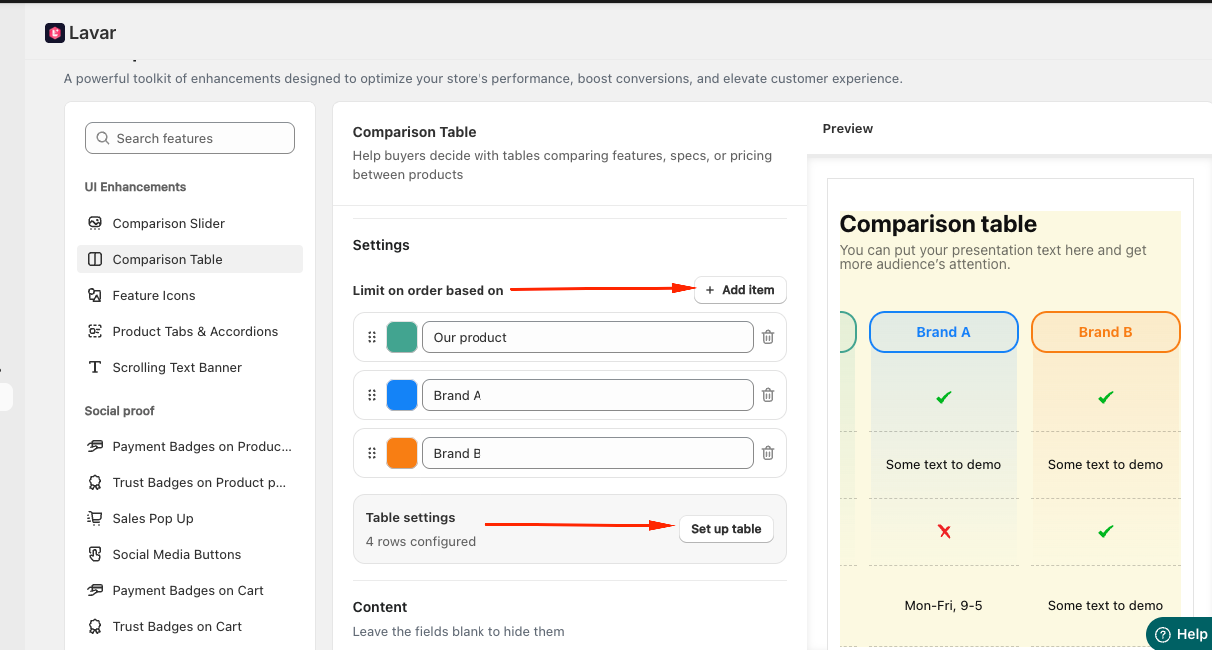 Step 3: Configure the Comparison Table Settings & Content