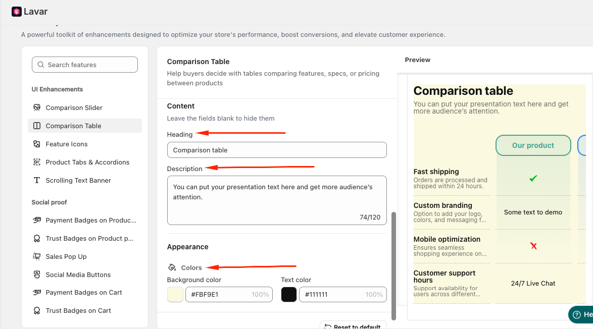 Step 4: Customize Comparison Table Content & Appearance