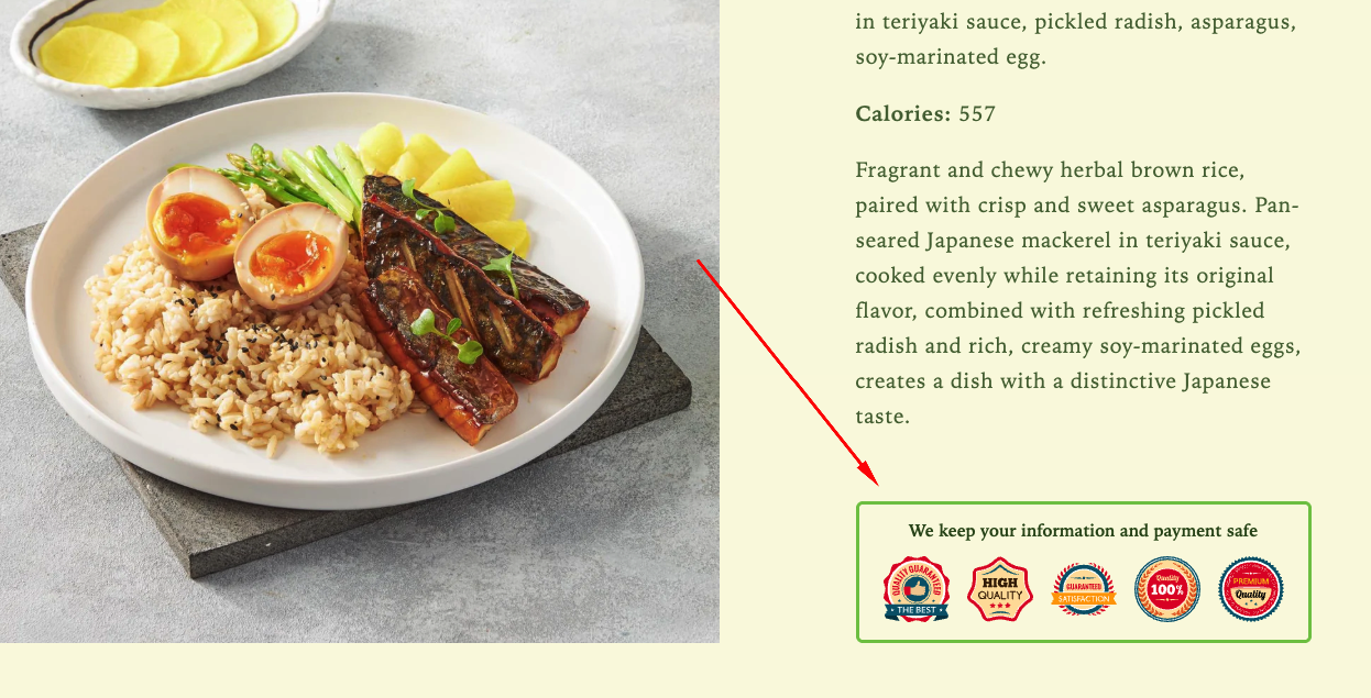 Trust Badges highlight key assurances—such as secure checkout, satisfaction guarantees, or premium quality—helping strengthen credibility and reassure customers before they make a purchase.