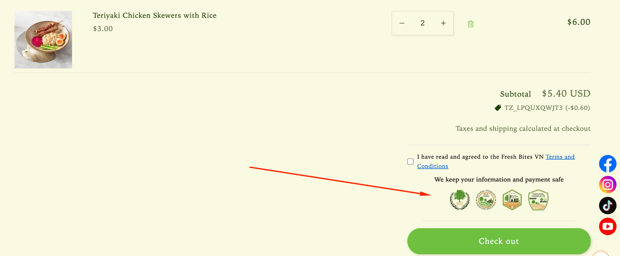 How the Trust Badges display on the Cart page
