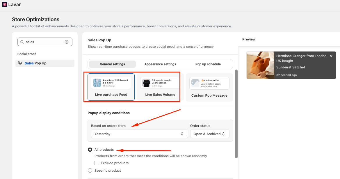 If you have checked all the settings above and the Sales Pop-up still does not appear, please contact support@lavar.app or submit a ticket here for further assistance.